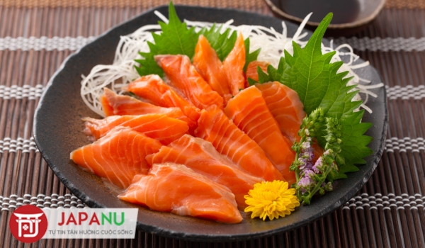 Nếu bạn yêu thích các món sashimi Nhật, thì sashimi cá hồi là món ăn không thể bỏ qua. Thịt cá hồi cắt khúc tươi sống và mềm ngon được cắt thành những miếng mỏng vừa phải, khi ăn kèm với wasabi sẽ mang lại trải nghiệm ẩm thực tuyệt vời.