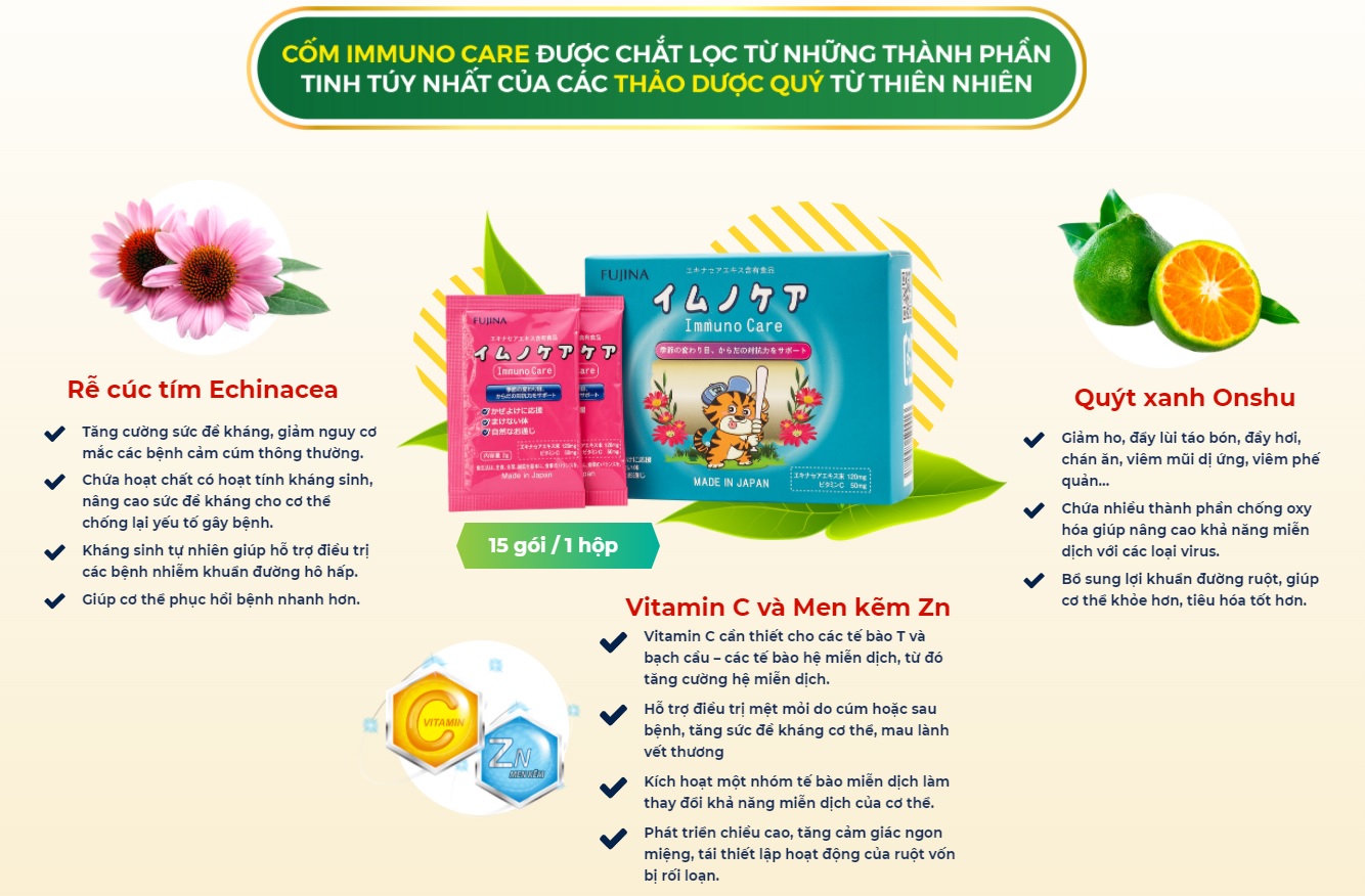 - Bổ sung viên Cốm Tăng Miễn Dịch Fujina IMMUNO CARE đến từ Nhật Bản.