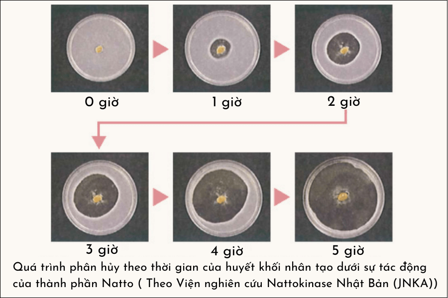 Theo nghiên cứu, Nattokinase có khả năng phân hủy protein fibrin trong huyết khối, giúp làm giảm kích thước và trọng lượng của chúng. Điều này đúng với cơ chế hoạt động của Nattokinase, là phá hủy sợi fibrin và các thành phần khác của huyết khối dư thừa, làm cho chúng dễ dàng bị loại bỏ khỏi hệ thống tuần hoàn.