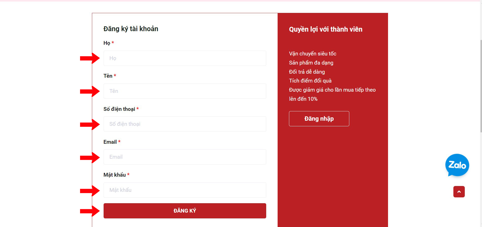Điền đầy đủ các thông tin vào các chỗ trống và ấn “ĐĂNG KÝ” để hoàn tất tạo tài khoản.