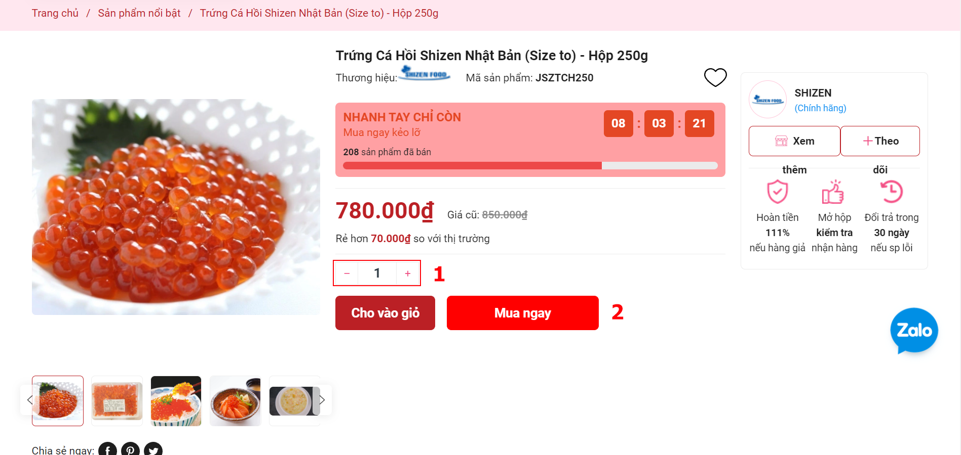 - Chọn “Cho vào giỏ” để thêm sản phẩm vào giỏ hàng và tiếp tục lựa chọn thêm các sản phẩm khác.