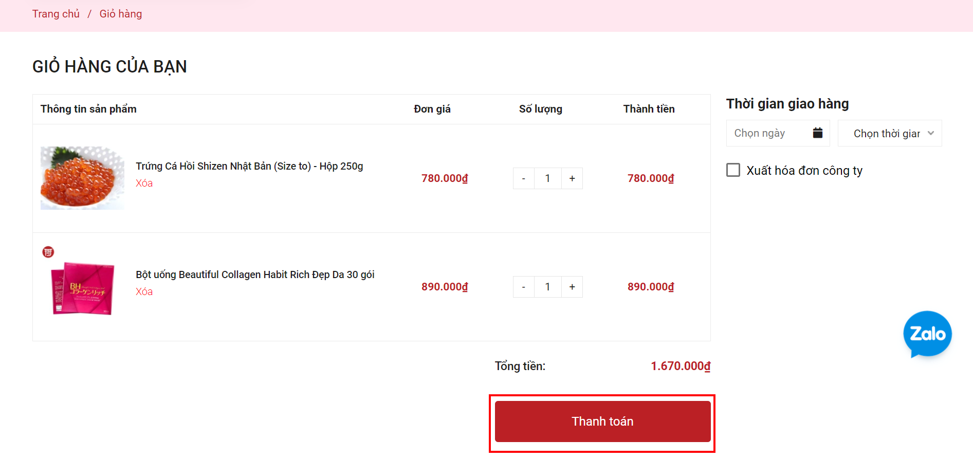 Bước 2: Kiểm tra lại các sản phẩm cần thanh toán và ấn "THANH TOÁN"
