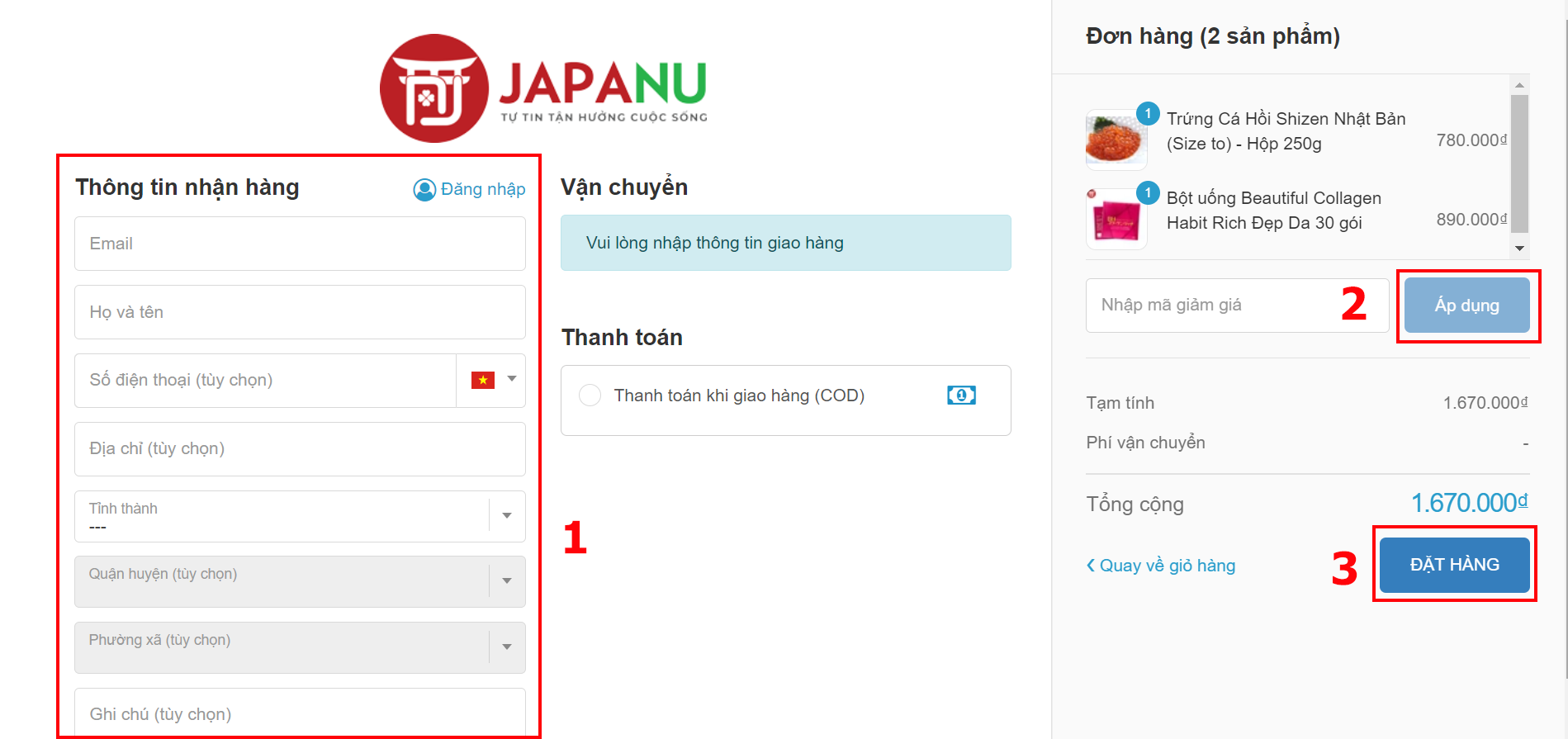 Japanu xin gửi đến quý khách hàng lời cảm ơn vì đã đặt niềm tin tại cửa hàng chúng tôi. Để thuận tiện mua hàng, Japanu xin hướng dẫn quý khách cách đặt hàng tại website japanu.vn vô cùng đơn giản với các bước sau: