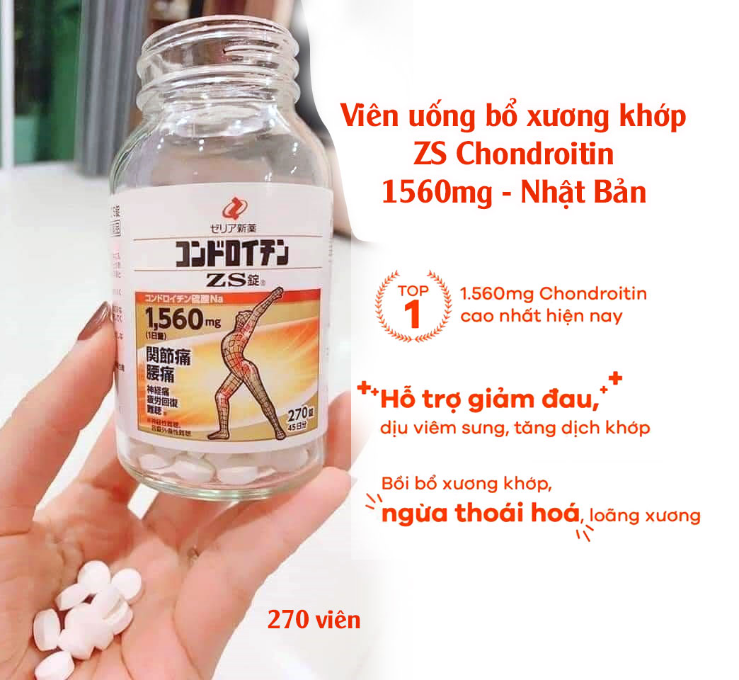 Viên Uống Xương Khớp ZS Chondroitin 1560mg có hàm lượng cao Chondroitin 1560mg là sản phẩm nổi tiếng tại Nhật Bản với tác dụng nhanh chóng trong việc giúp xương khớp chắc khoẻ, dẻo dai và phòng ngừa các bệnh về xương khớp.