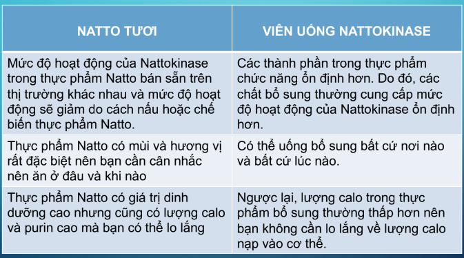 So sánh khi sử dụng Natto & viên uống Nattokinase